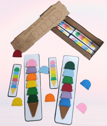 Aprendizagem divertida com reconhecimento de cores, sabores e noções de sequência, lógica e cores
